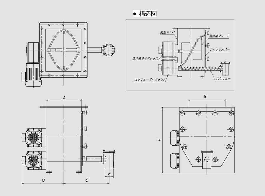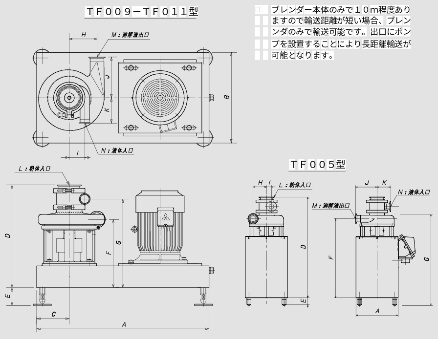 ・ブレンダーの前後に液体供給ポンプ及び混液輸送ポンプと粉体供給口には粉体定量供給機と組み合わせて使用するものです。