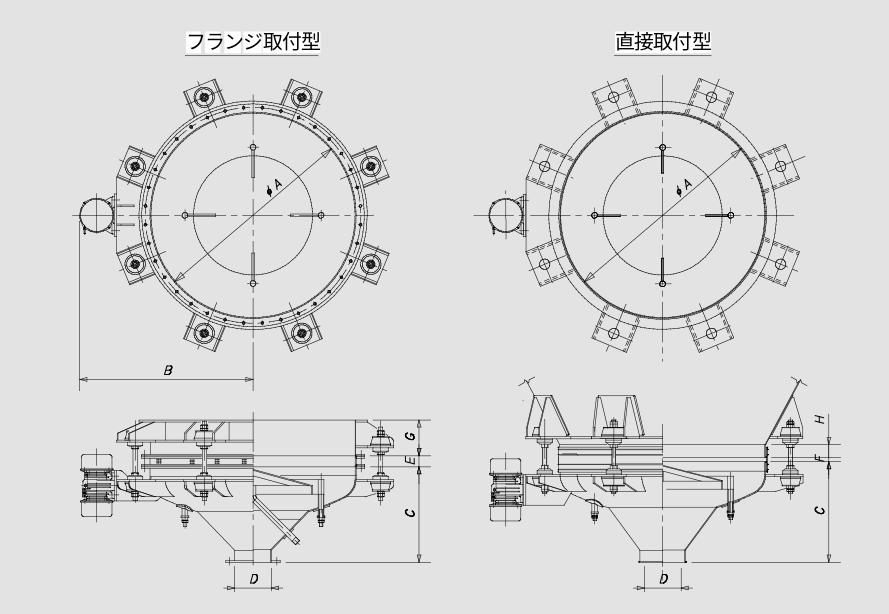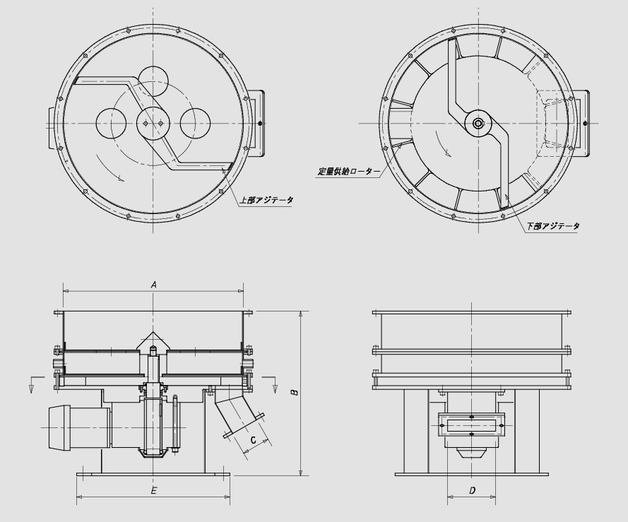 ・振動排出機(UPD)は粉粒体の貯蔵サイロの底部に取付け、粉粒体の排出をスムーズに行わせるものです。